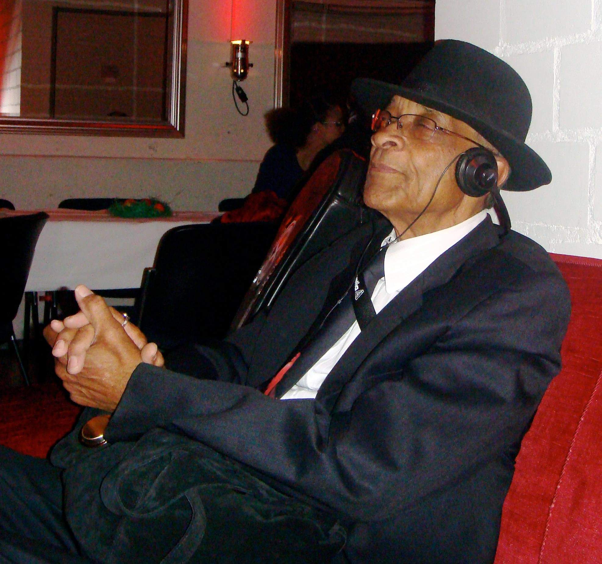 Hubert Sumlin listening to his old recordings with Howlin’ Wolf in Basel, Switzerland before a 2009 show. Photo by Bob Margolin.