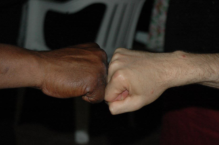 Big Pete sharing verses with Finis Tasby at the Final Jam (Photo by Jocelyn Richez)