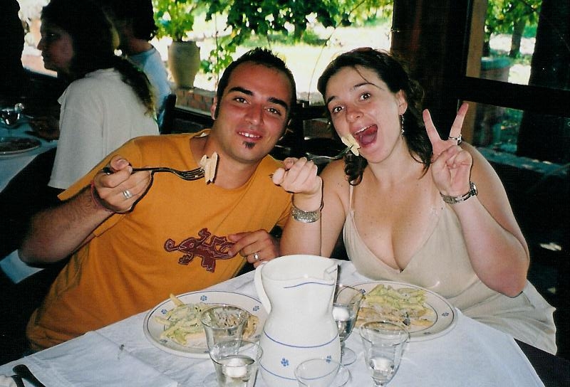 Guitarist Umberto Porcaro and girlfriend Stefania enjoying some pasta! (Photo by Bob Corritore)